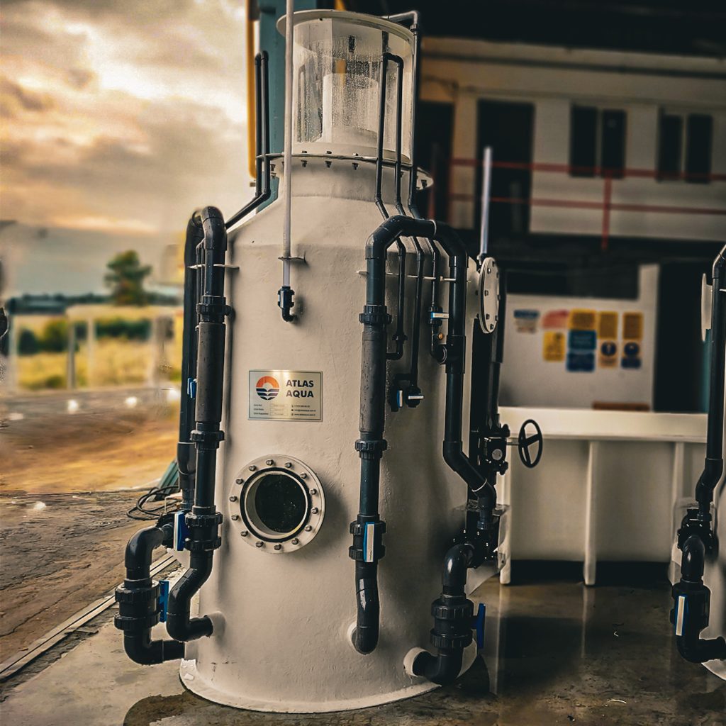 The Atlasaqua Protein Skimmer is a high efficiency filtration device designed to improve and maintain water quality in marine aquaculture systems. It plays a critical role in removing dissolved organic waste from seawater, making it an essential component in fish and shellfish farming. By separating and eliminating organic matter in the form of foam, the skimmer helps ensure clearer water, better oxygen levels, and a healthier aquatic environment.